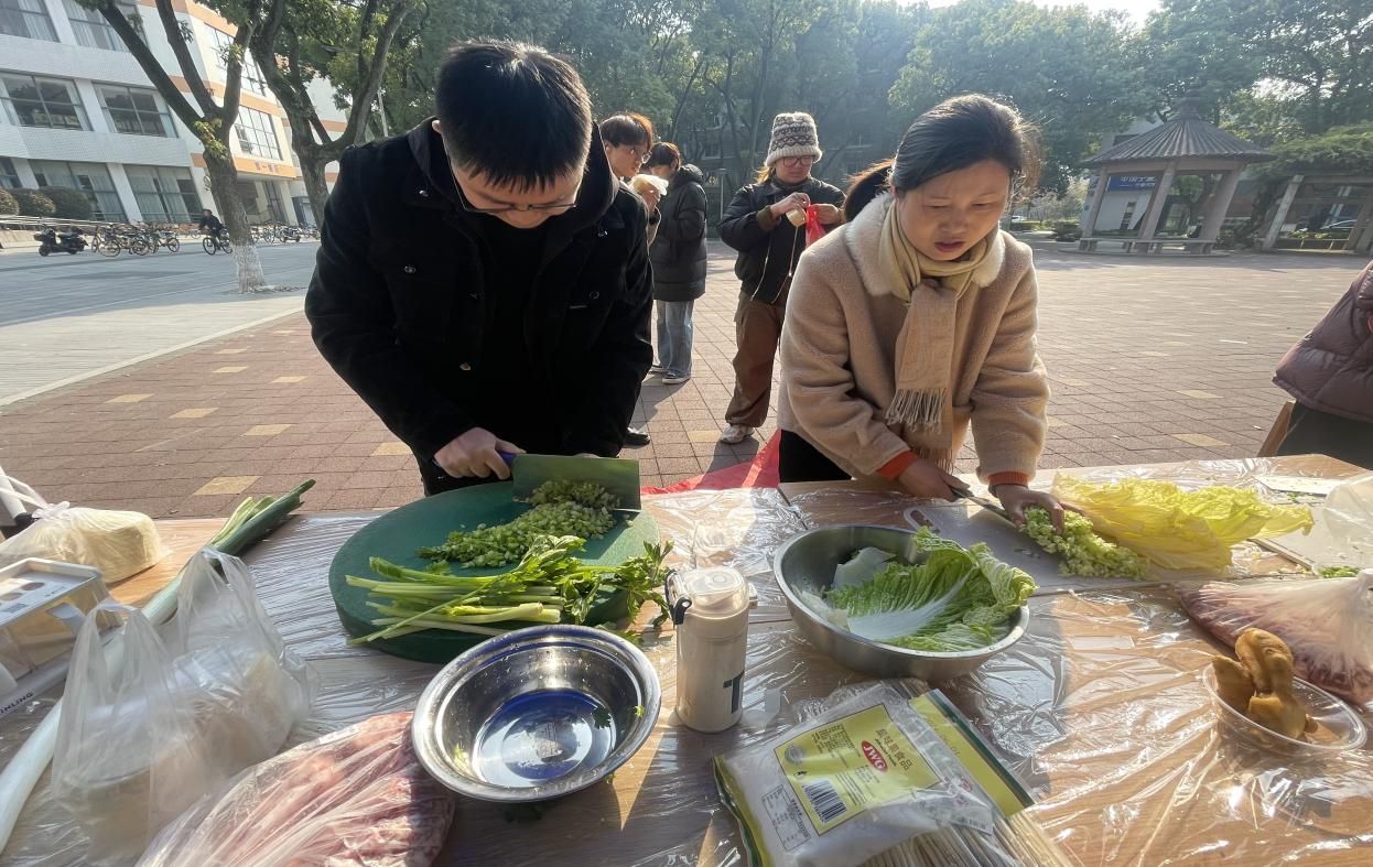 冬至大如年,人间小团圆。活动现场,学生们和教职工们齐心协力准备馅料、饺子皮等食材,大家边包饺子边交流,分享各自的包饺子的技巧和家乡的冬至习俗。