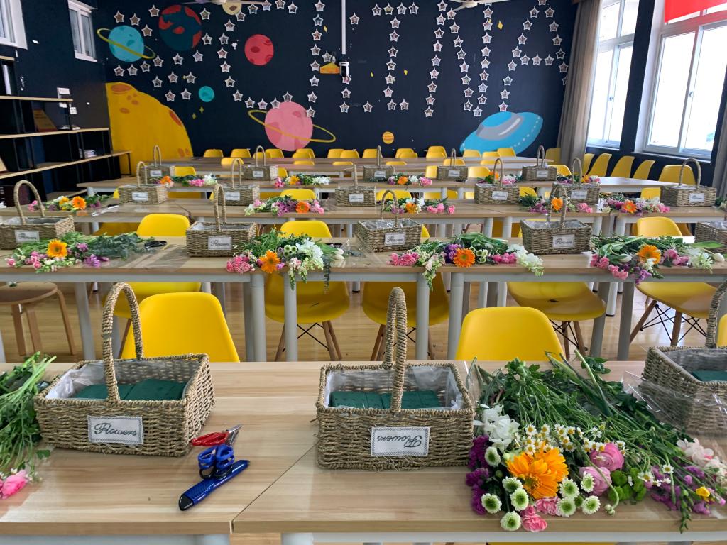 女教工们首先在培训老师的指导下,从花材选取、色彩搭配、结构设计等方面体验了插花活动。大家用灵巧的双手将原本普通的花材经过修剪、整枝、排列,根据不同花的形状、颜色搭配在一起,现场创作出属于自己的插花作品。一盆盆形态各系、鲜活灵动的花艺摆件在老师们手中悄然绽放。