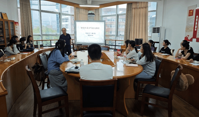 2024级研究生作了题为“研究生读书写论文漫谈”的讲座。讲座由中文学系主任周景耀老师主持。
