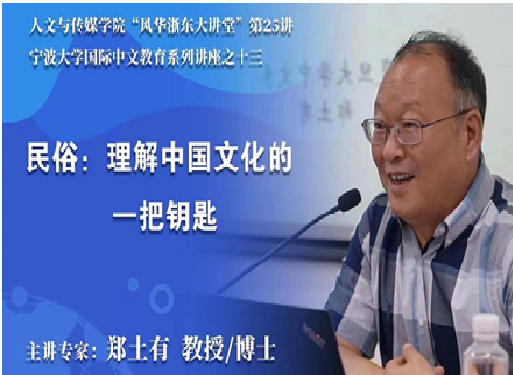 2022年10月26日下午,复旦大学中文系教授、中国民间文艺家协会副主席、中国民俗学会副会长郑土有教授应邀作了题为“民俗:理解中国文化的一把钥匙”的线上讲座,讲座由人文与传媒永利皇宫网