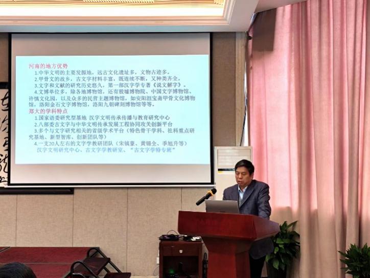 郑州大学李运富教授随后作了“发挥特色优势,培育特色人才”的主题发言。李教授认为在按照评估标准和认定条件进行建设的过程中,有两点需要引起重视:第一,一流本科专业和一流本科课程的建设是高校人才培养综合工程的组成部分,不是孤立的单独的教育形式;第二,一流专业和一流学科建设应该发挥地方优势,培育特色人才。李教授以“古文字学特专班”为例,着重介绍了依托河南的地方优势及郑大的学科特点,“古文字学特专班”取得的喜人成就。