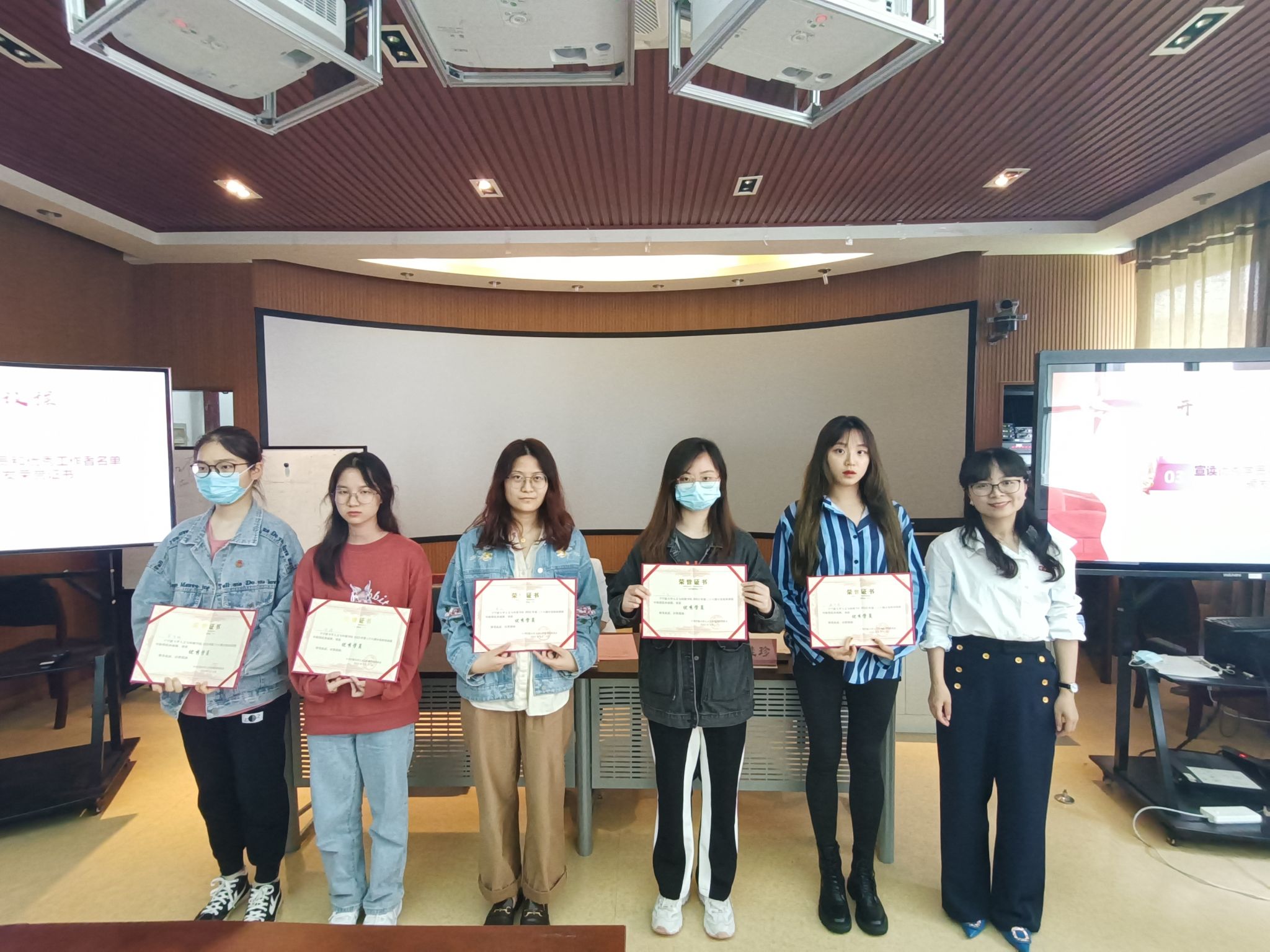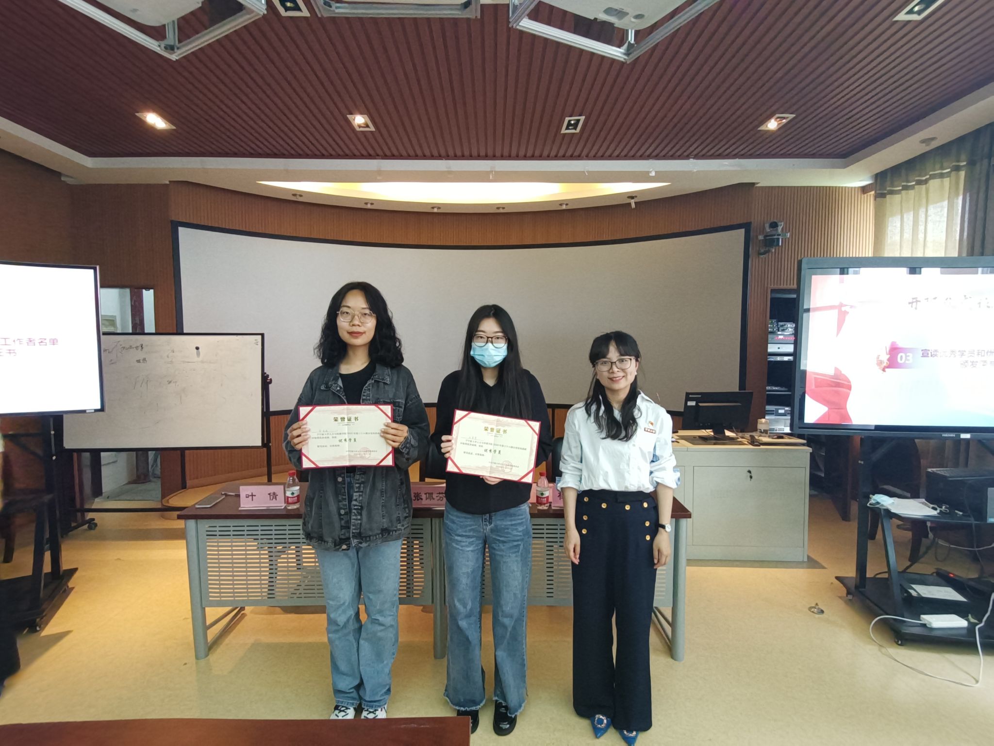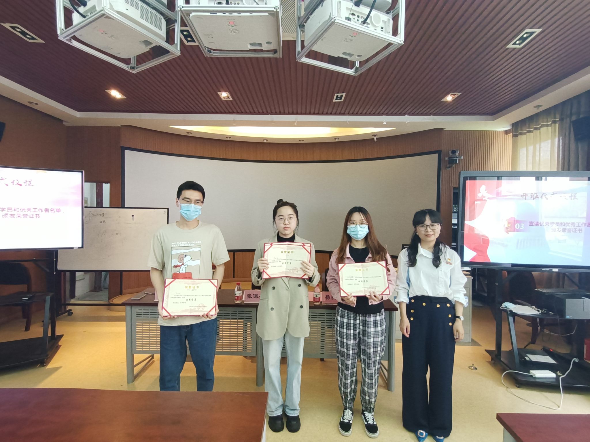 根据分党校学员的上课情况及各项考核,本次培训班中丁宁等14名学员考核成绩优秀,获评优秀学员。鉴于各学生支部的推荐和实际工作的考察,本次培训班中王子琳等6名学员工作勤勉努力,获评优秀工作者,张书记和杨书记分别为获奖同学颁发荣誉证书。