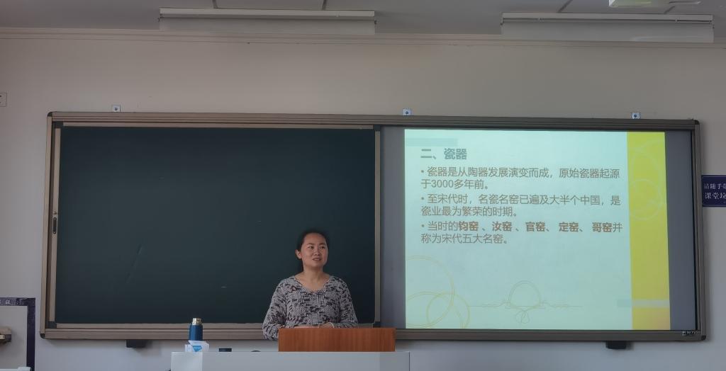 多名新进教师前来听课并观摩。“希望同学们以后走进博物馆,能够会看,会欣赏……”。金老师本次主讲“瓷器”,她从史的角度阐述了瓷器的发展演变,从艺术的角度带领学生鉴赏钧瓷等瓷器,更从今的目光娓娓而谈中国瓷器的世界之路。