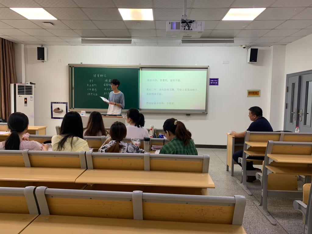 第十五届师范生教学技能竞赛选拔赛(中学语文组)在包玉书科学楼8号楼顺利举行。2018级汉语言文学(师范)全体本科生40余人参加了本次比赛。宁波市教育局教研室高中语文教研员毛刚飞老师,宁波市潘火实验中永利皇宫网