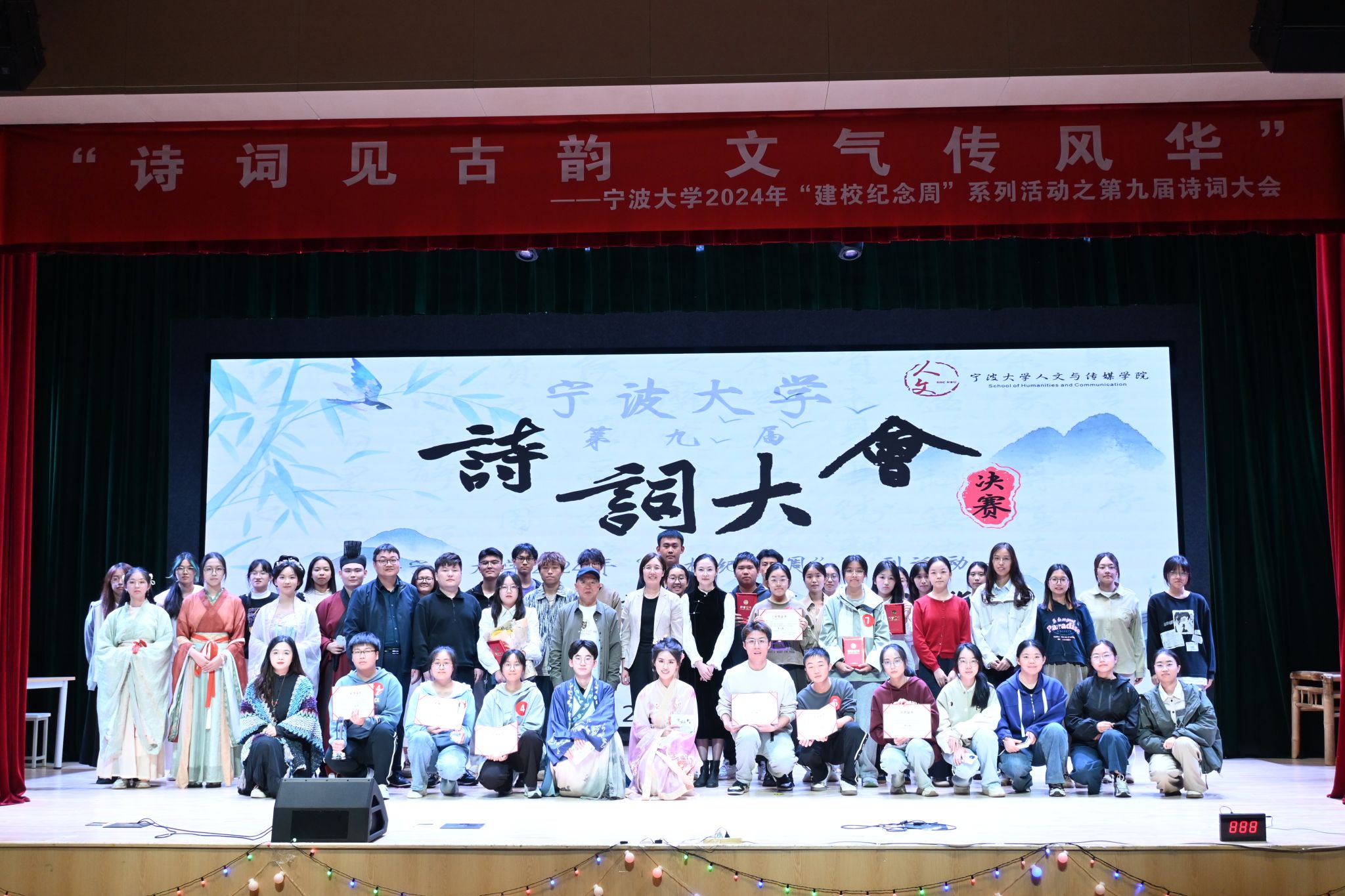 第九届诗词大会决赛在锦绣小剧场成功举办。李亮伟老师、吴雨辰老师、杨文钰老师担任评委,永利皇宫网