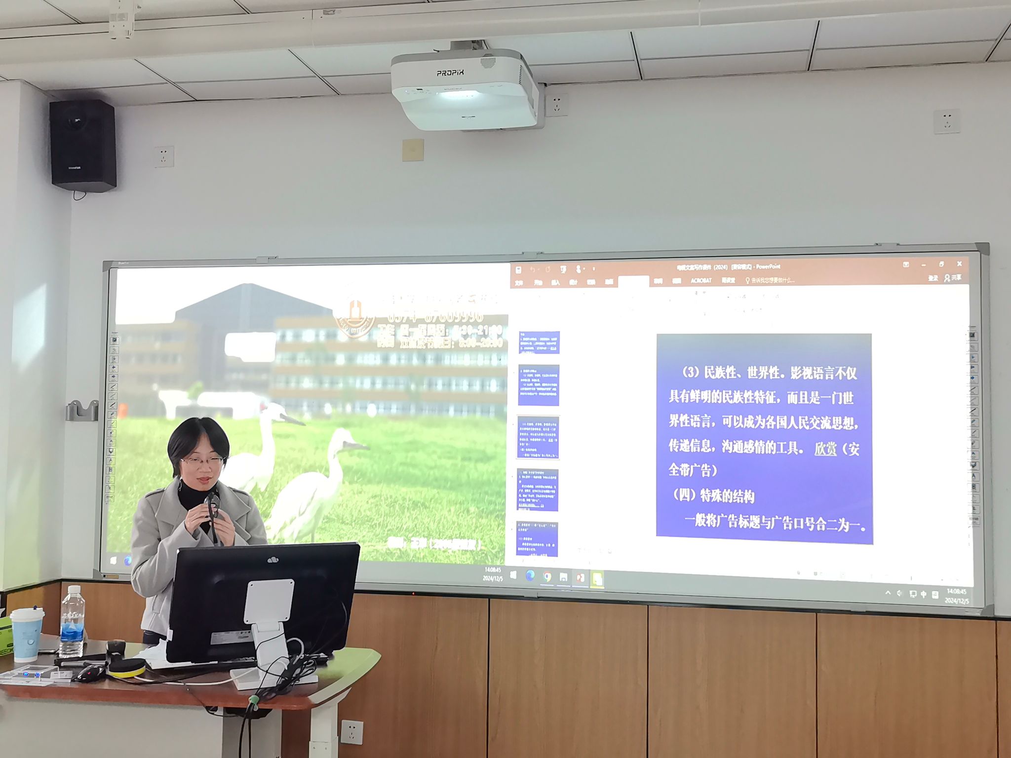 张颖老师面向全校讲授课程思政公开观摩课“广告文案写作”。永利皇宫网