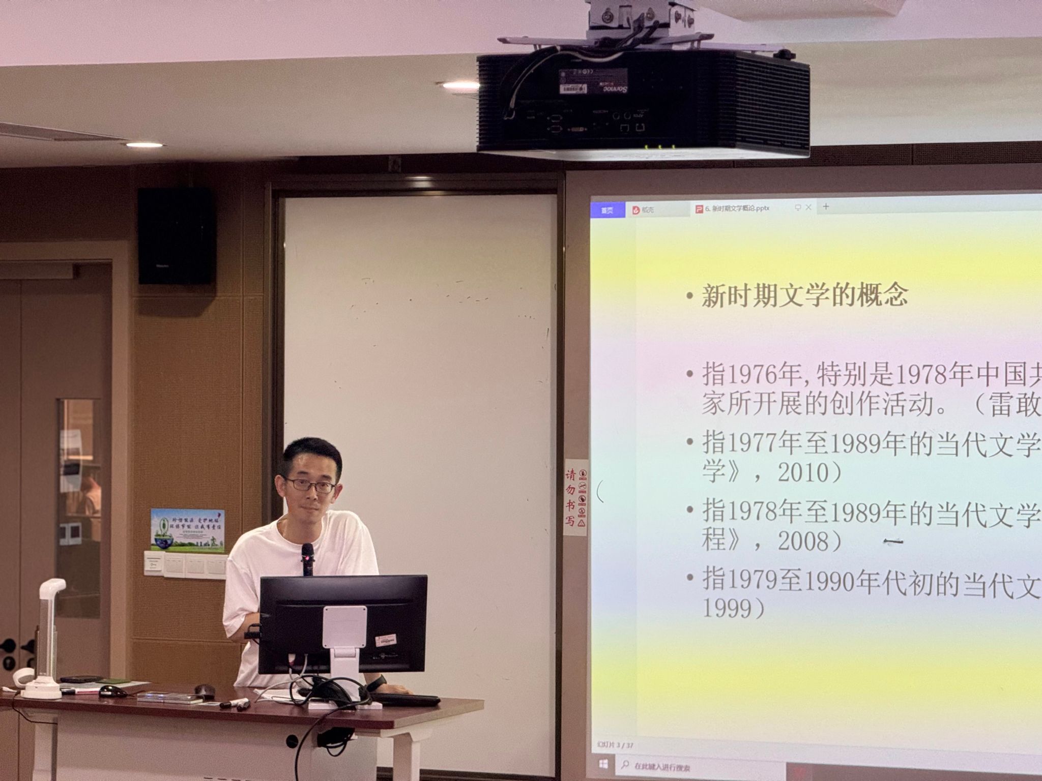 本次课程聚焦于新时期文学领域。章涛老师以清晰的逻辑架构,从新时期文学概念的起源讲起,细致阐释了新时期文学各发展阶段划分的深层原因,并对相关文学现象进行生动概述,为学生搭建起系统的知识框架。在课堂互动环节,章涛老师巧妙地将学生对课程内容的疑惑与“人工智能+”深度融合。他引导学生转变传统“求答案”的学习模式,鼓励大家通过独立思考、史料积累和文本细度,形成自己对文学现象的独到见解。同时,他着重强调,人工智能不应被视作获取答案的捷径,而应作为辅助学习的有力工具,助力大家在知识探索的道路上走得更稳、更远。