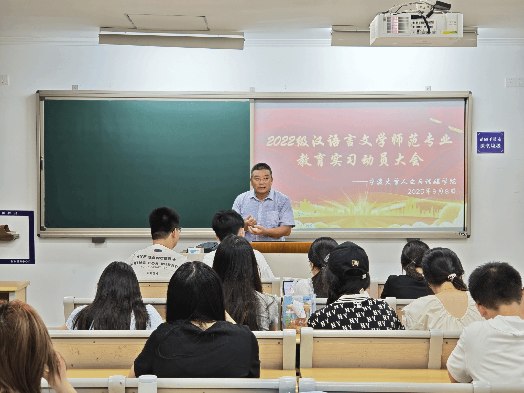 2025年9月8日18时,由王志凯老师主持的2022级汉语言文学师范专业教育实习动员大会在8号楼202教室顺利举行。