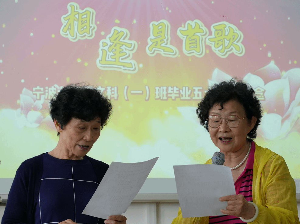 接下来的座谈会上,校友们展示着珍藏的照片、分享着各自的人生故事,众人欢聚一堂、有说有笑。最后,校友们合唱《相逢是首歌》,喜悦且复杂的情感在会议室久久回荡。