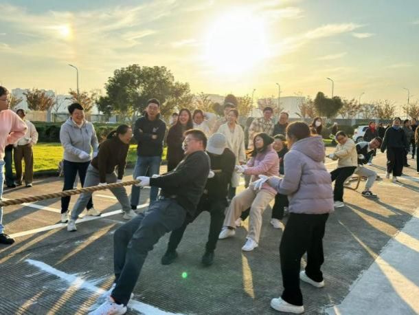 一声响亮的指令宣告比赛正式开始。参赛双方扎稳马步、严阵以待,场上的气氛瞬间焦灼起来。比赛中,随着有规律的“一二,一二!”口号声,拔河绳被绷成一条直线,双方势均力敌,展现出强烈的韧劲和毅力。
