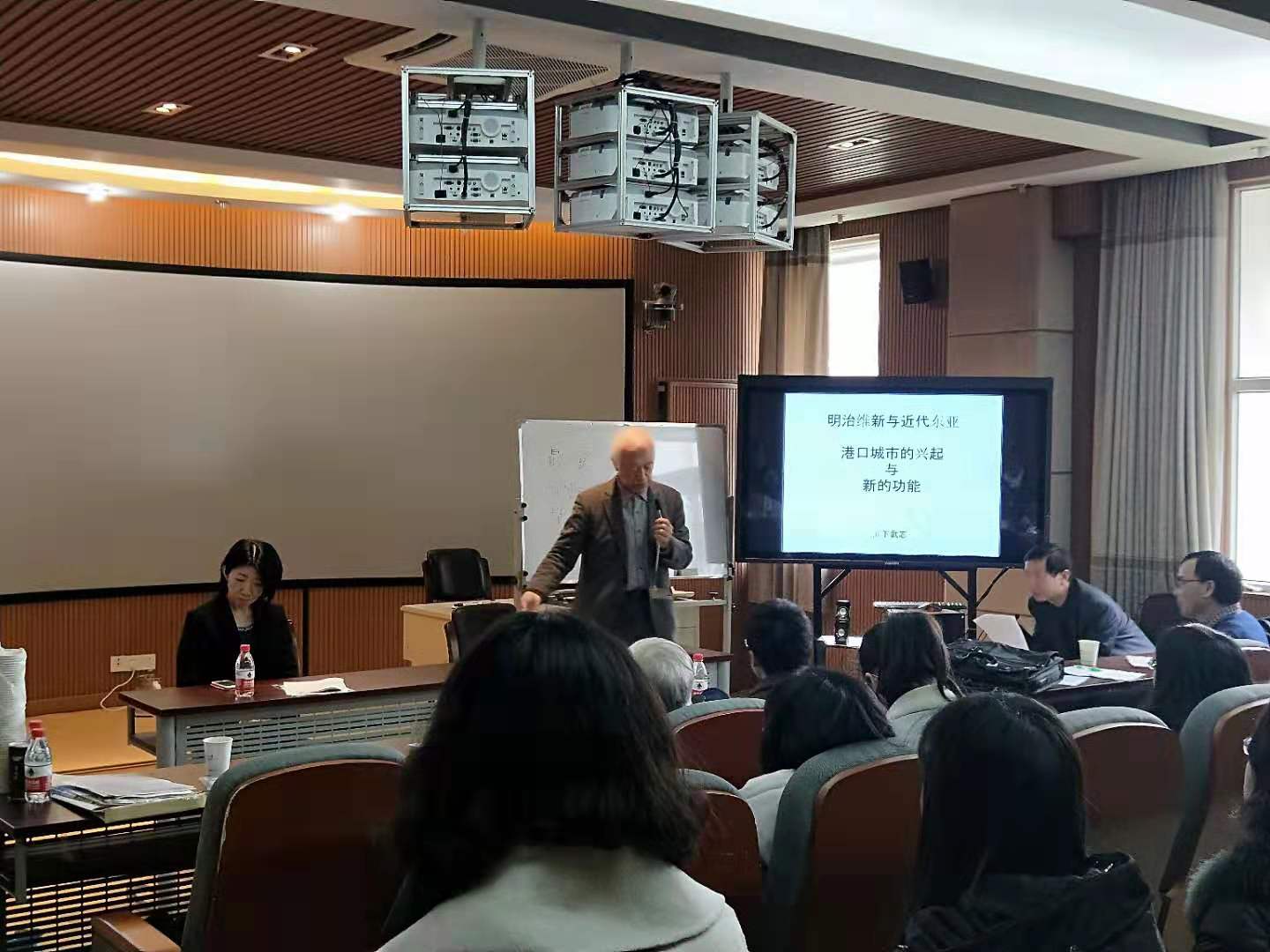 其后,滨下武志先生做了题为“明治维新与近代东亚港口城市的兴起与新功能”的学术报告,报告旨在阐明历史上地区与地区之间交流的内在机理。他以东亚概念为核心,介绍了区域与知域之复层。滨下武志先生的报告涉及了当代学术前沿问题,结合2018年12月20日滨下武志教授在永利皇宫网 所做“海阳亚洲与港口城市网络”的报告所涉及额相关问题,进一步剖析“海洋亚洲”的理论体系,深化了大家对该研究领域的认识。