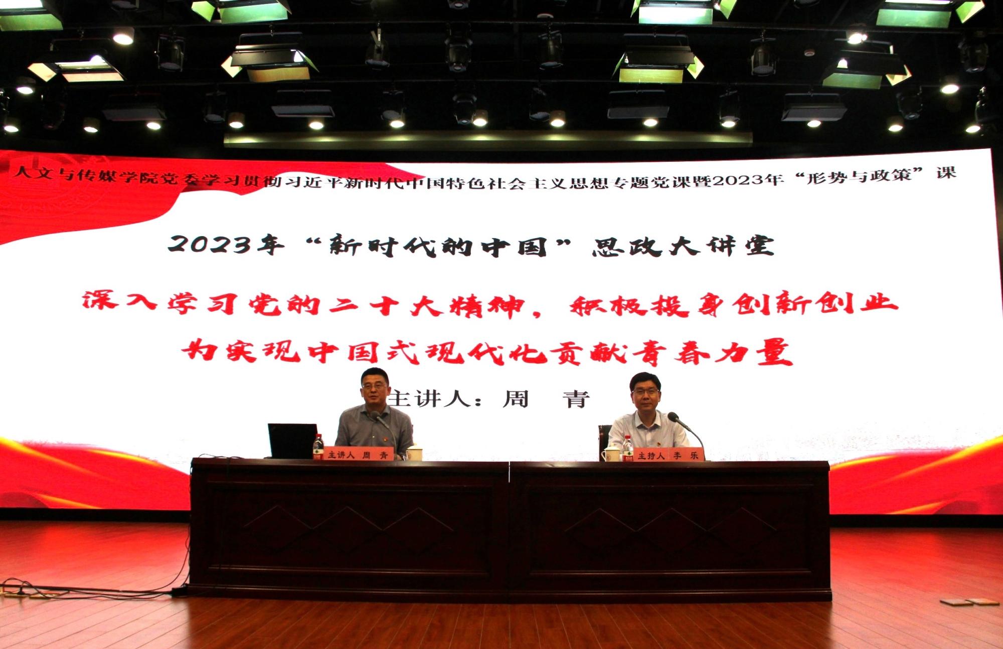 党委委员、宣传部部长周青以“深入学习党的二十大精神,积极投身创新创业为实现中国式现代化贡献青春力量”为主题,用鲜活的事例、通俗的语言、严谨的逻辑,为人文与传媒永利皇宫网