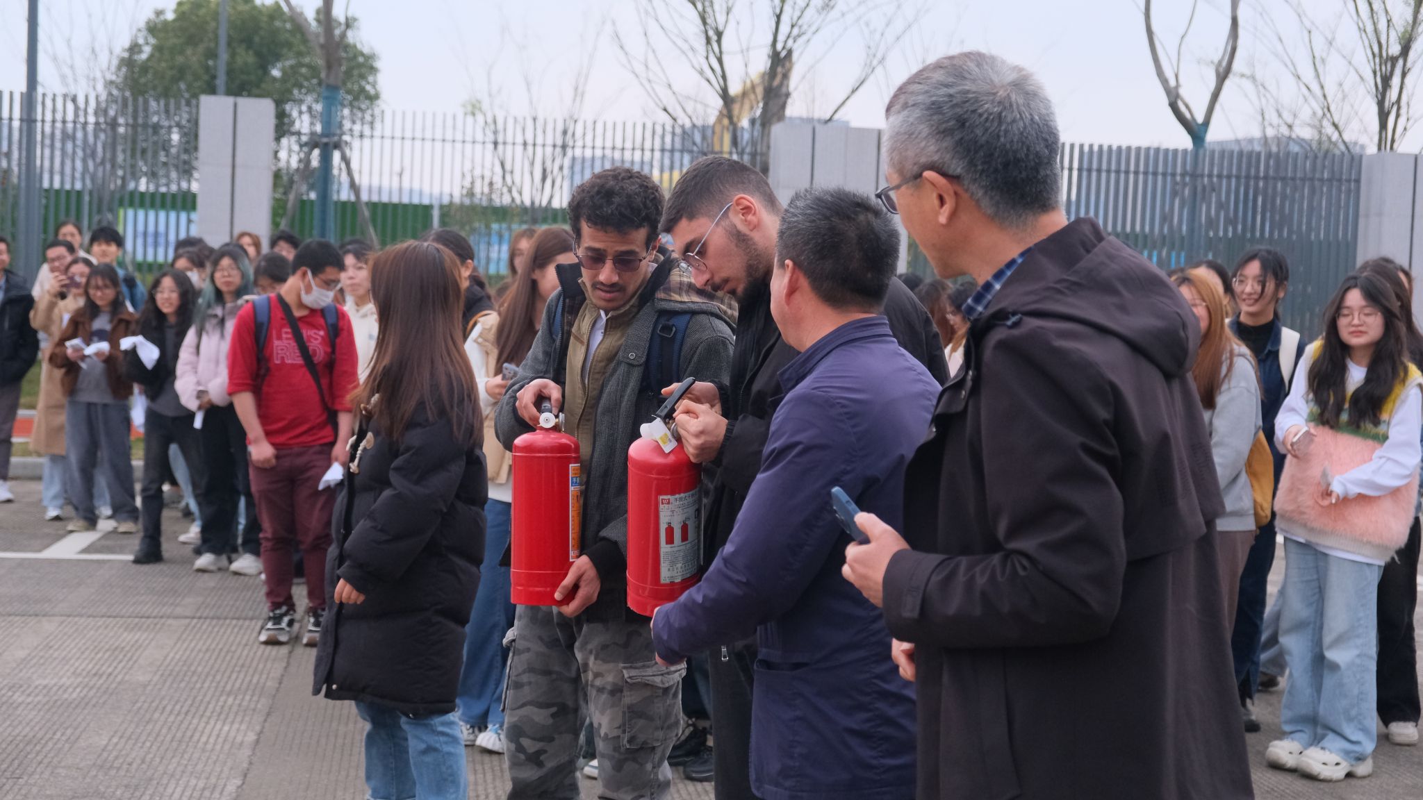 随后,保卫处郑勇辉老师在10号楼前空旷地区给在场的师生讲解了灭火器的原理、基本操作方法并进行了示范。