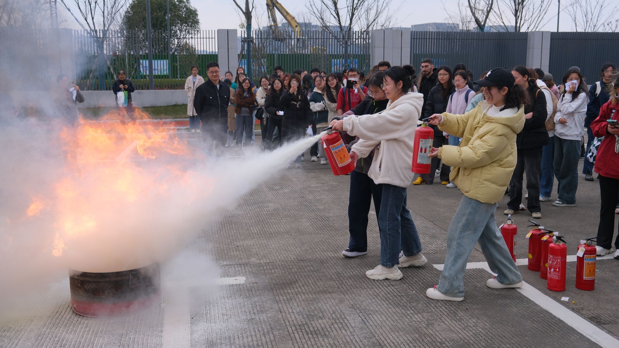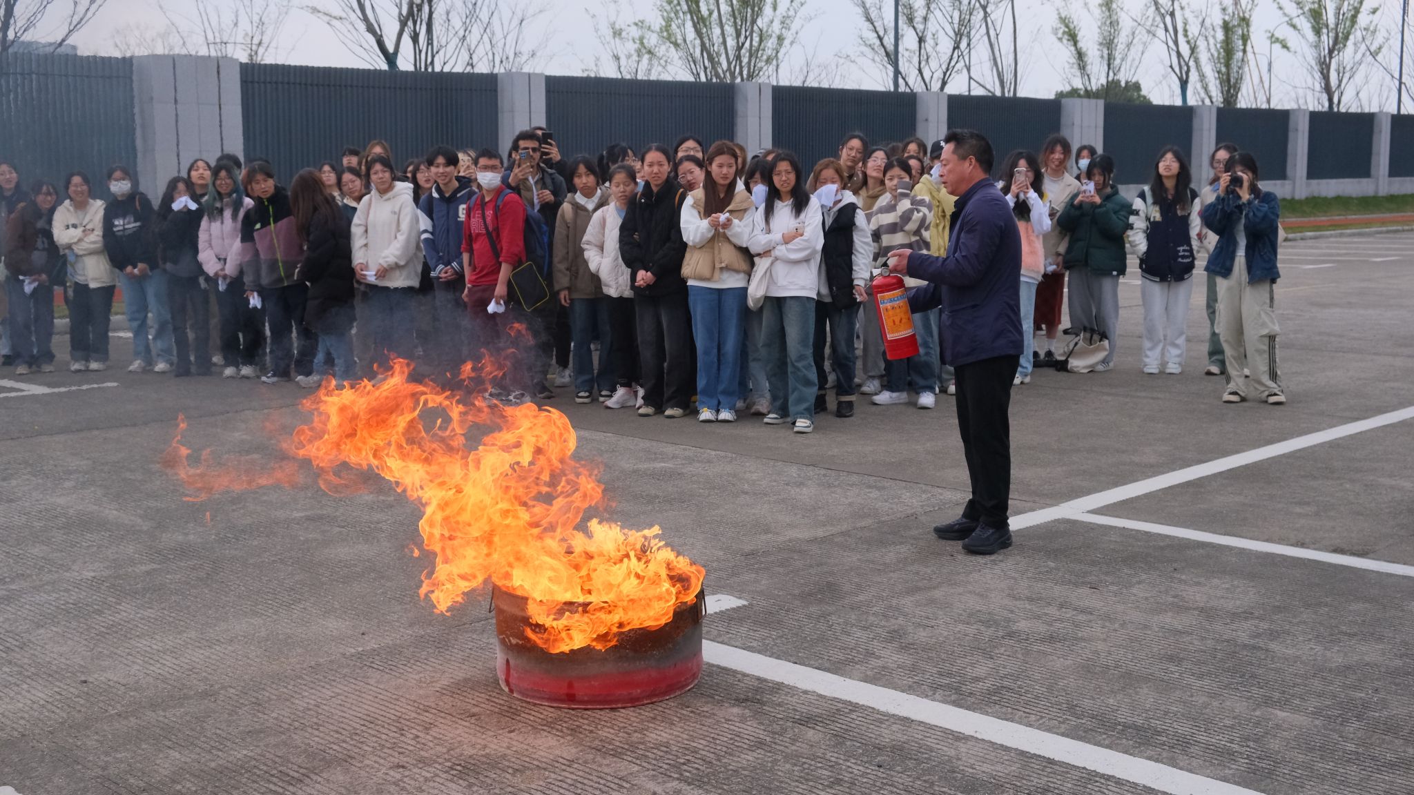 师生们在认真听讲及观摩后,进行了灭火器现场演练,部分师生分批进行了实际操作,面对熊熊燃烧的火堆,表现十分积极和勇敢,按照灭火步骤和方法将大火迅速扑灭。通过实战化的演练使参加人员掌握了灭火器的使用和扑灭初起火灾的方法,取得了较好的演练效果。