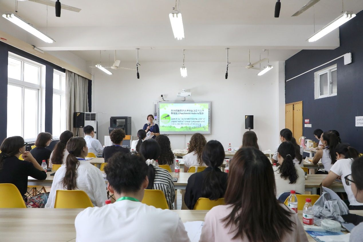 院长Facchinetti Roberta出席并致辞,会议由国际处杨美美老师主持。