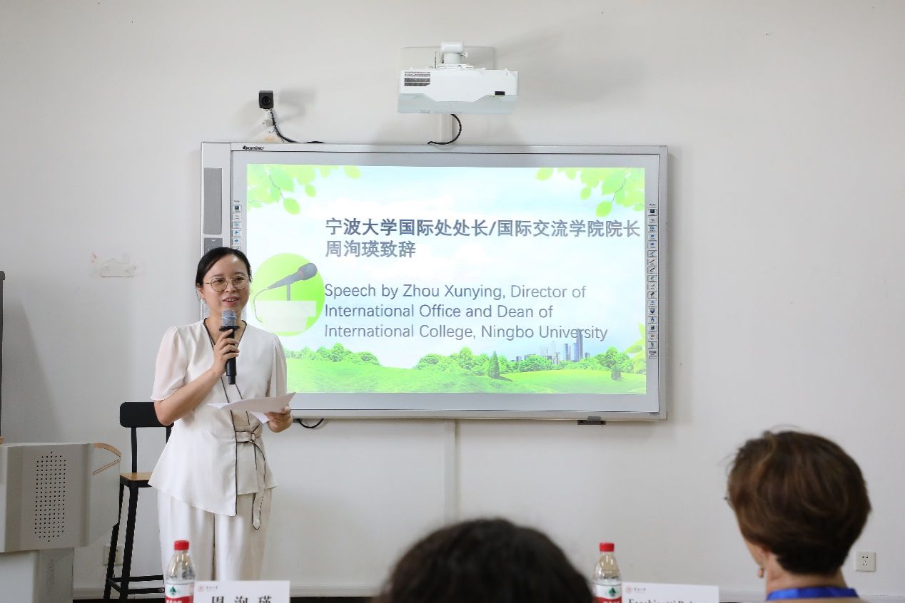 院长Facchinetti Roberta表示很高兴来到宁波,她谈到了从确定到宁大访问到现在几个月以来的心路历程,介绍了维罗纳大学的中国语言文学教育教学历史。师生于2014年开始学习中文,逐步了解中国语言文化,学生们非常努力,一步步走到现在。她希望两校友谊长存,未来有更多交流合作。
