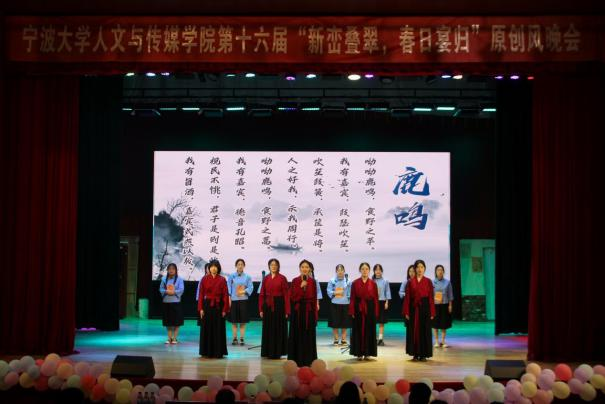 作为吟诵团的一员,非常开心能够参加此次原创风晚会。前期负责人认真组织策划本次吟诵节目《鹿鸣》,包括节目的编排、排练等等。并且,每一位吟诵团的成员也都积极响应,在忙碌的期中阶段抽出时间参与到节目中来。从最终的结果来看,我们的节目《鹿鸣》好评如潮,最终赢得了最佳表演奖!这一次表演是吟诵团成立以来第一次亮相,准备过程中成员之间友好交流的氛围令我记忆犹新,相信我们的吟诵团能够越办越好,吟出人文风采!将传统文化之花绽放在校园的每一个角落。