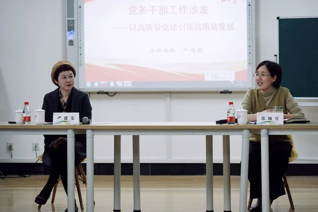 党委书记严建雯老师,以《以高质量党建引领高质量发展》为主线,围绕“发挥党支部思想引领作用、调动党员积极性、党建与业务深度融合、建强支部书记队伍建设、建设党建领航项目”等问题,分享了自己多年的党建工作经验,提出作为一名党务干部,既要有理论修养,也要有坚定的信念,要坚持将前瞻性思考、战略性布局、整体性推进相结合,在调查研究、精准谋划中将工作走深做实见效,在全面复盘、总结中创新中促进党建与业务工作深度融合。